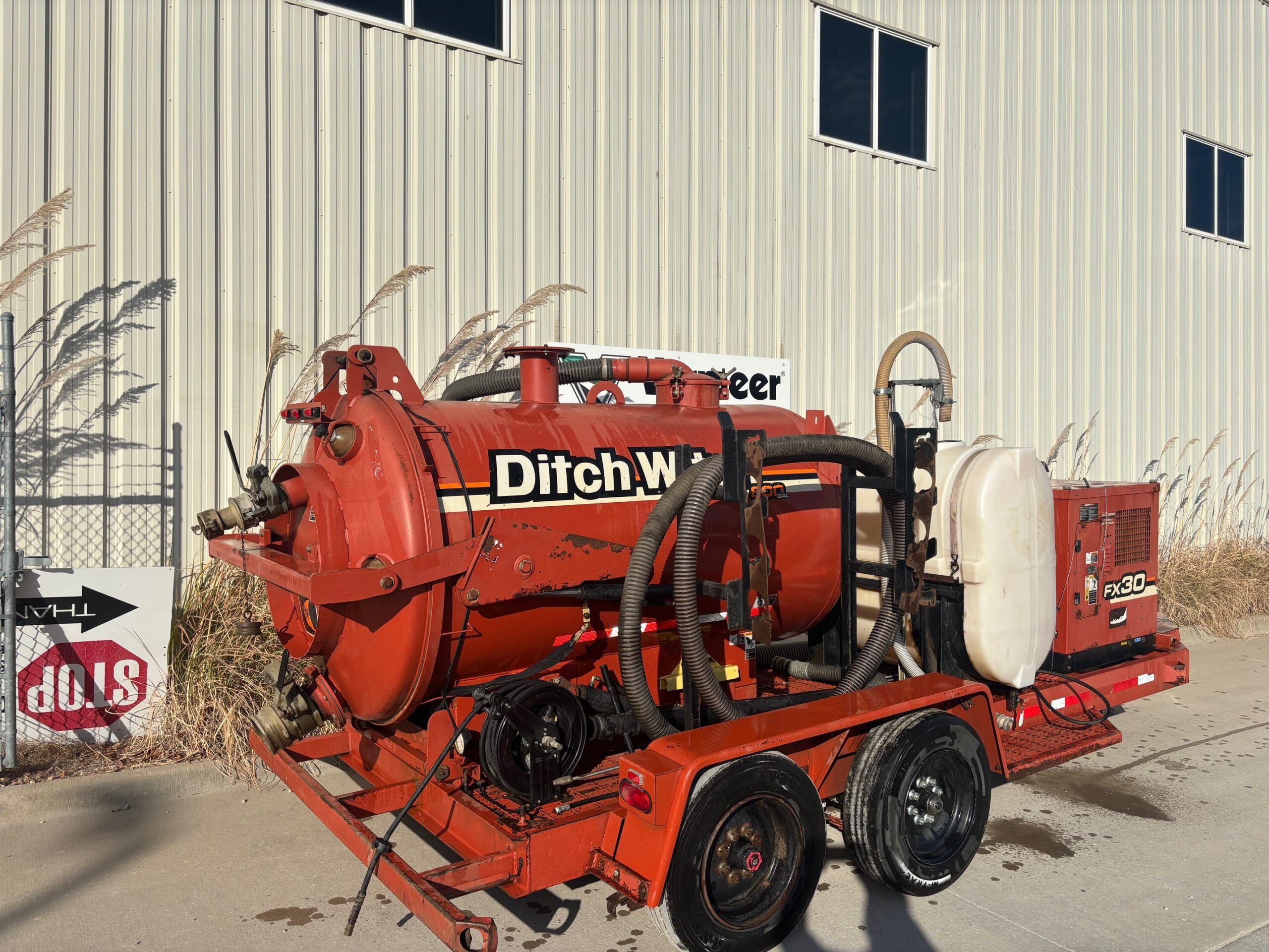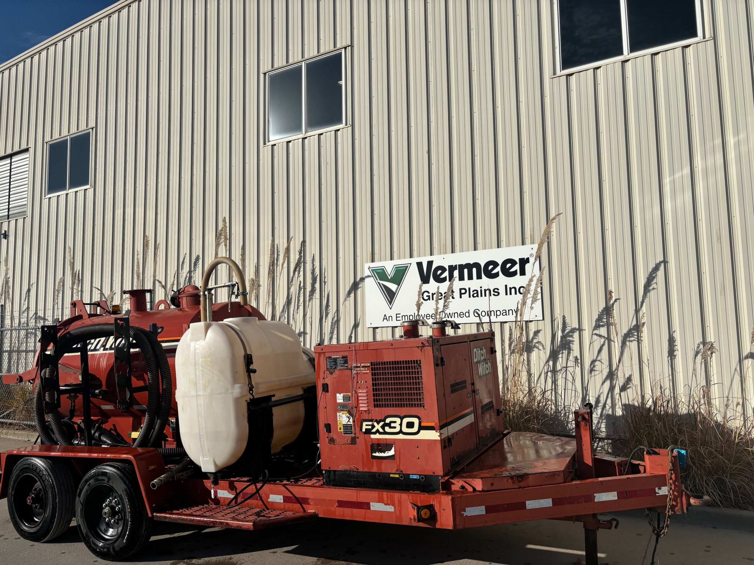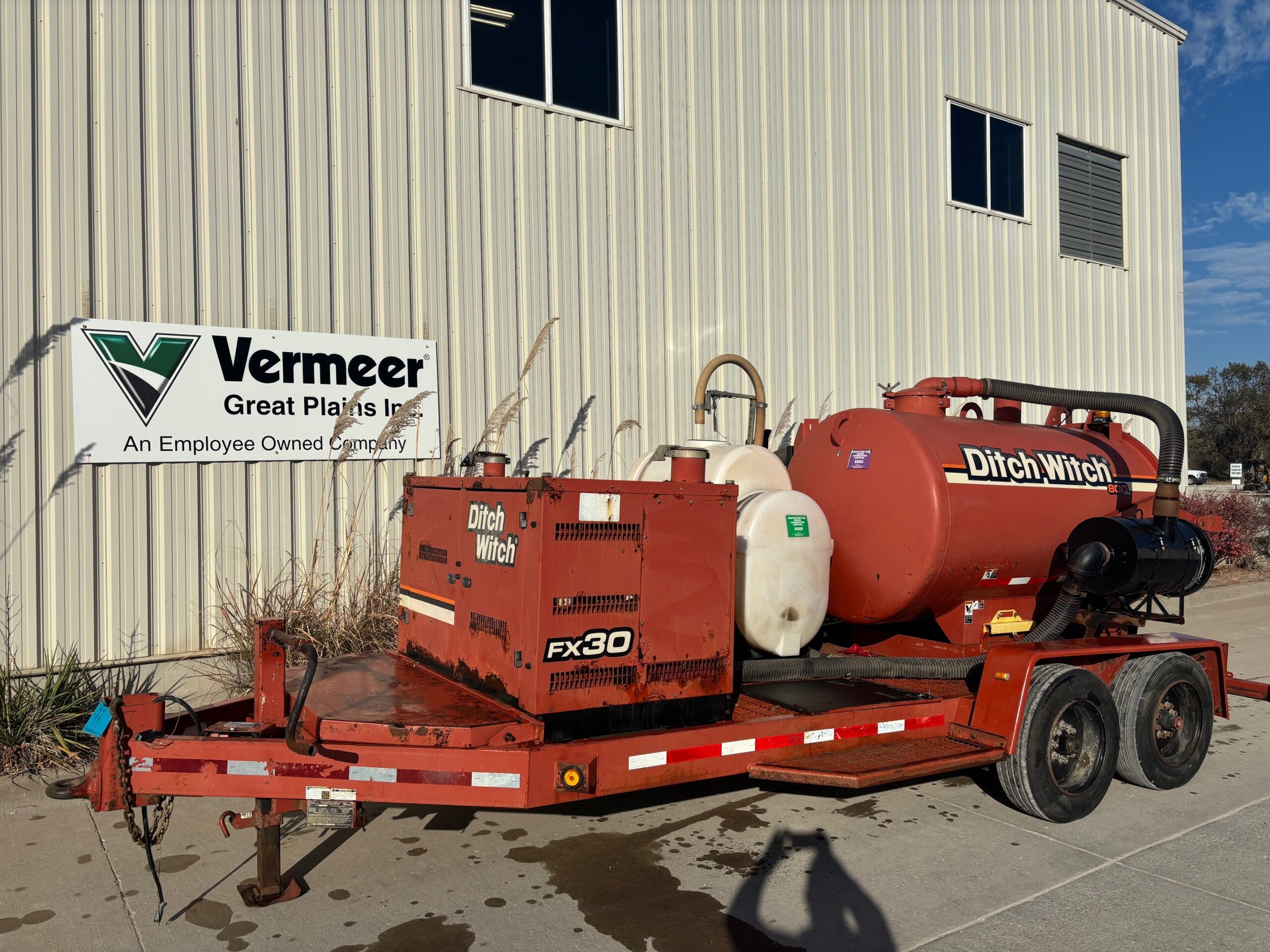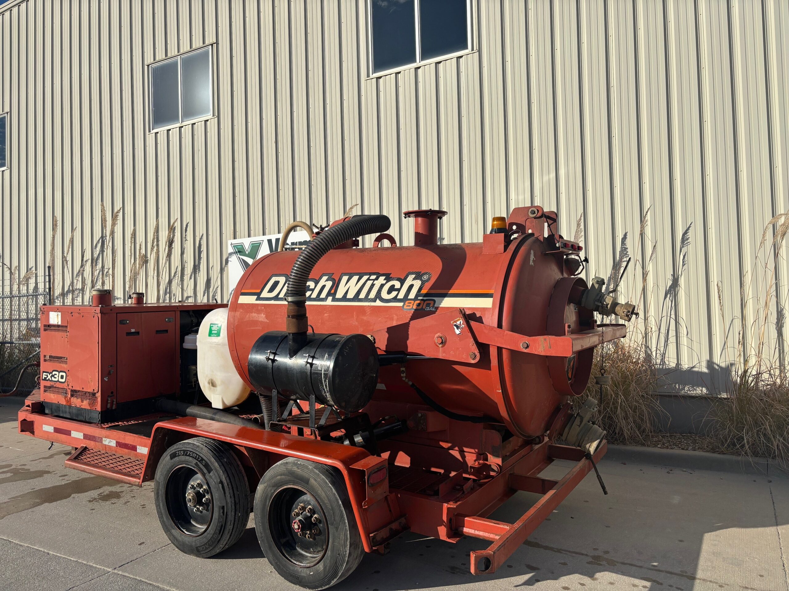 The 2013 Ditch Witch FX30 with an 800-gallon tank (like the one with E018758, likely a unit number) is a powerful, trailer-mounted vacuum excavator used for potholing and cleanup, featuring a Kubota diesel engine, a high-pressure water system, and substantial debris and water tank capacities for its size, offering curbside controls for a single operator