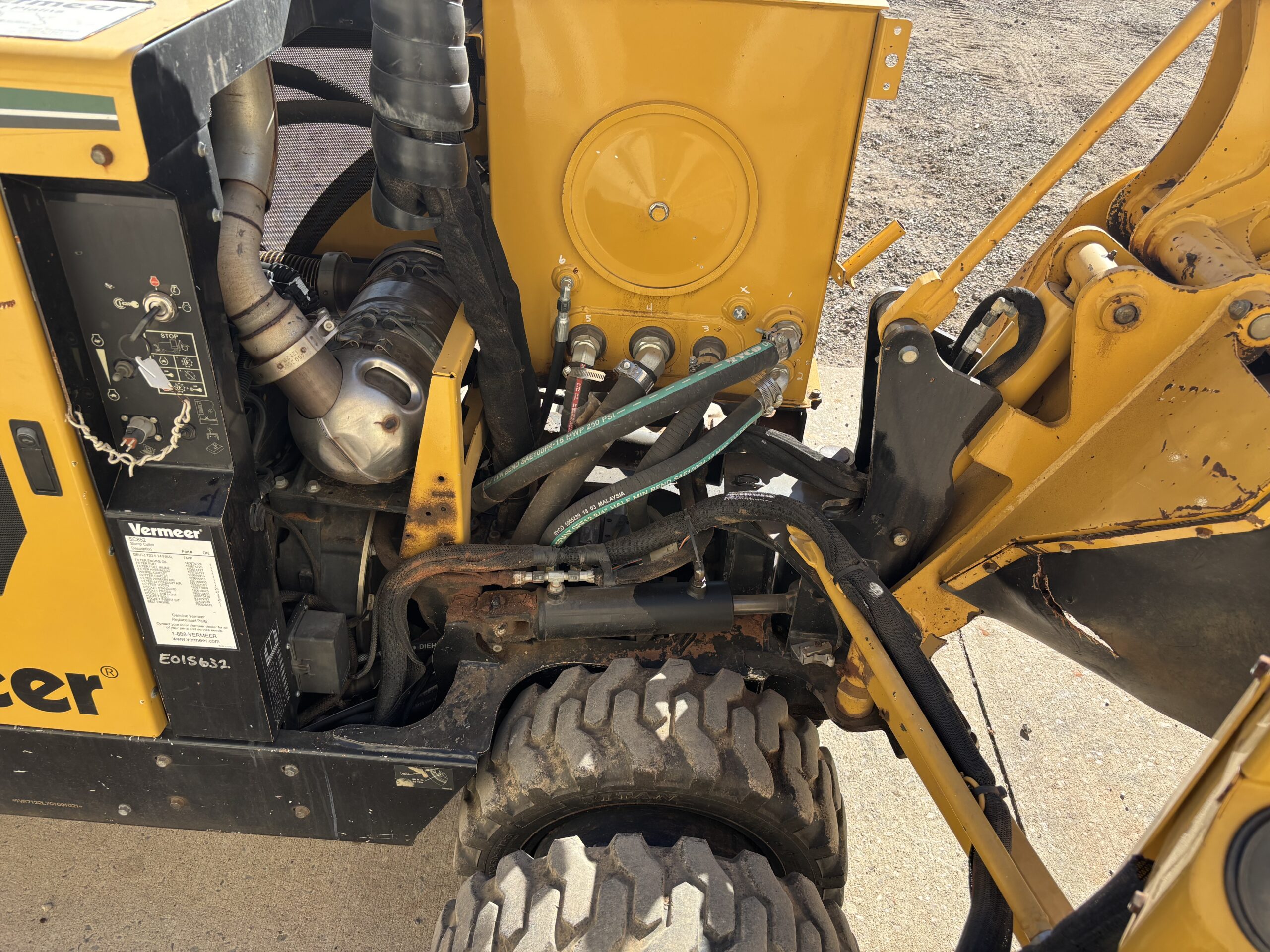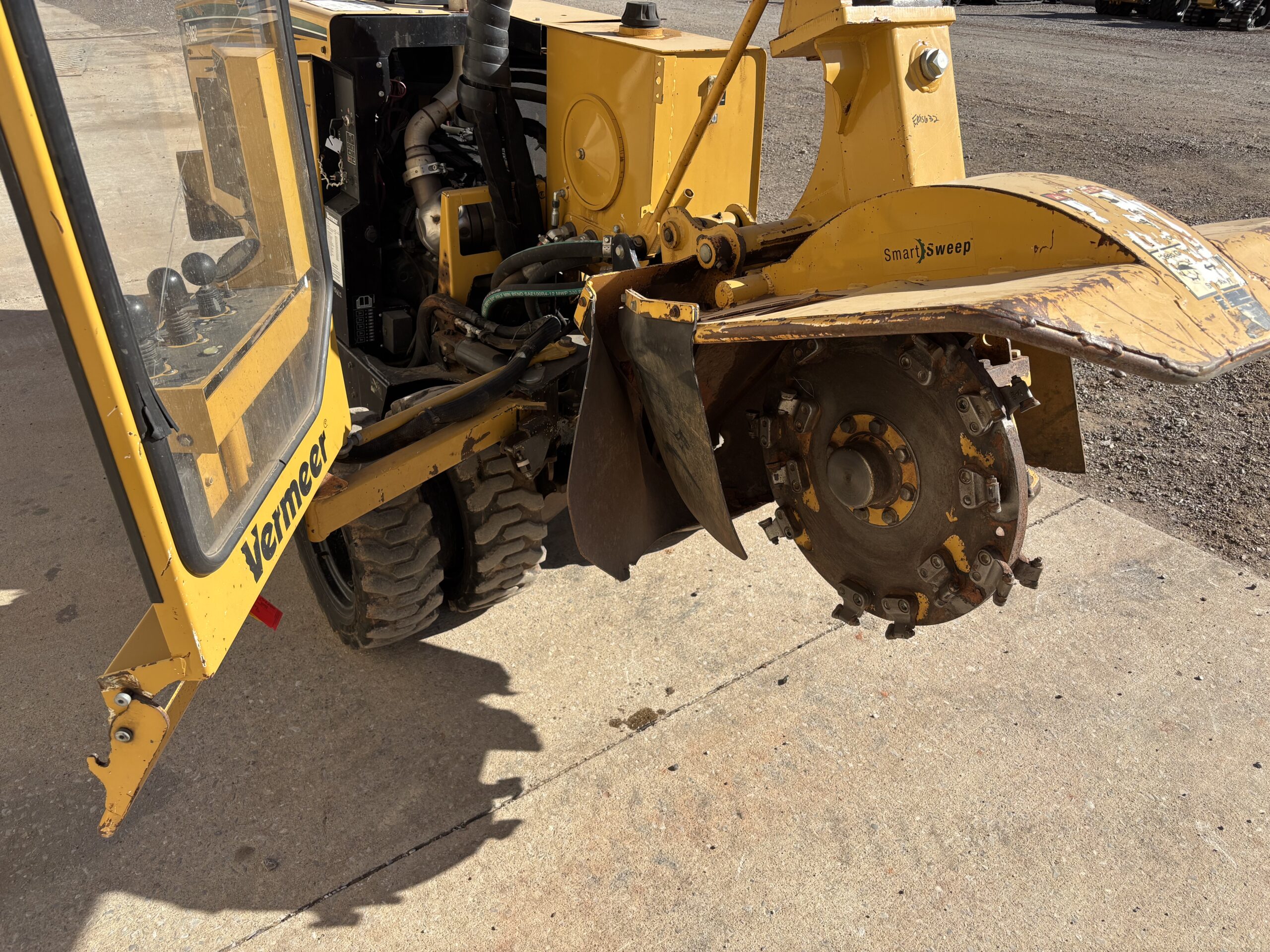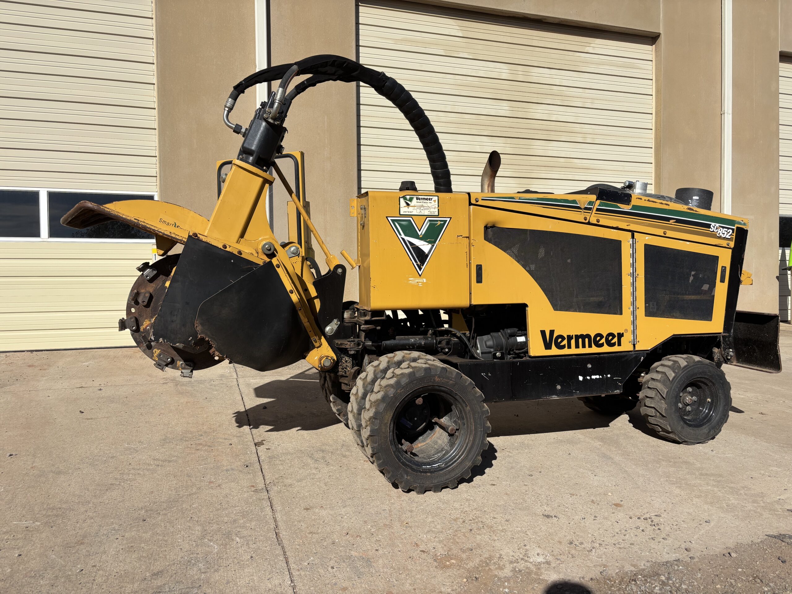 Engineered for an ideal balance of power and agility, the slim SC852 stump cutter can glide through a standard gate and still deliver 74 hp (55 kW) of stump-grinding power with a Deutz TD2.9L Tier 4 Final engine. The Yellow Jacket™ Cutter System helps extend pocket and tooth life and facilitates routine maintenance. All-wheel drive, varying speed and heavy-duty rubber tires gets you in and around residential or off-road job sites with ease. Updates like operator’s presence, remote mounted cooling system as well as SmartSweep™, a new fuel tank design and hydraulic updates are also present in this powerful stump cutter.