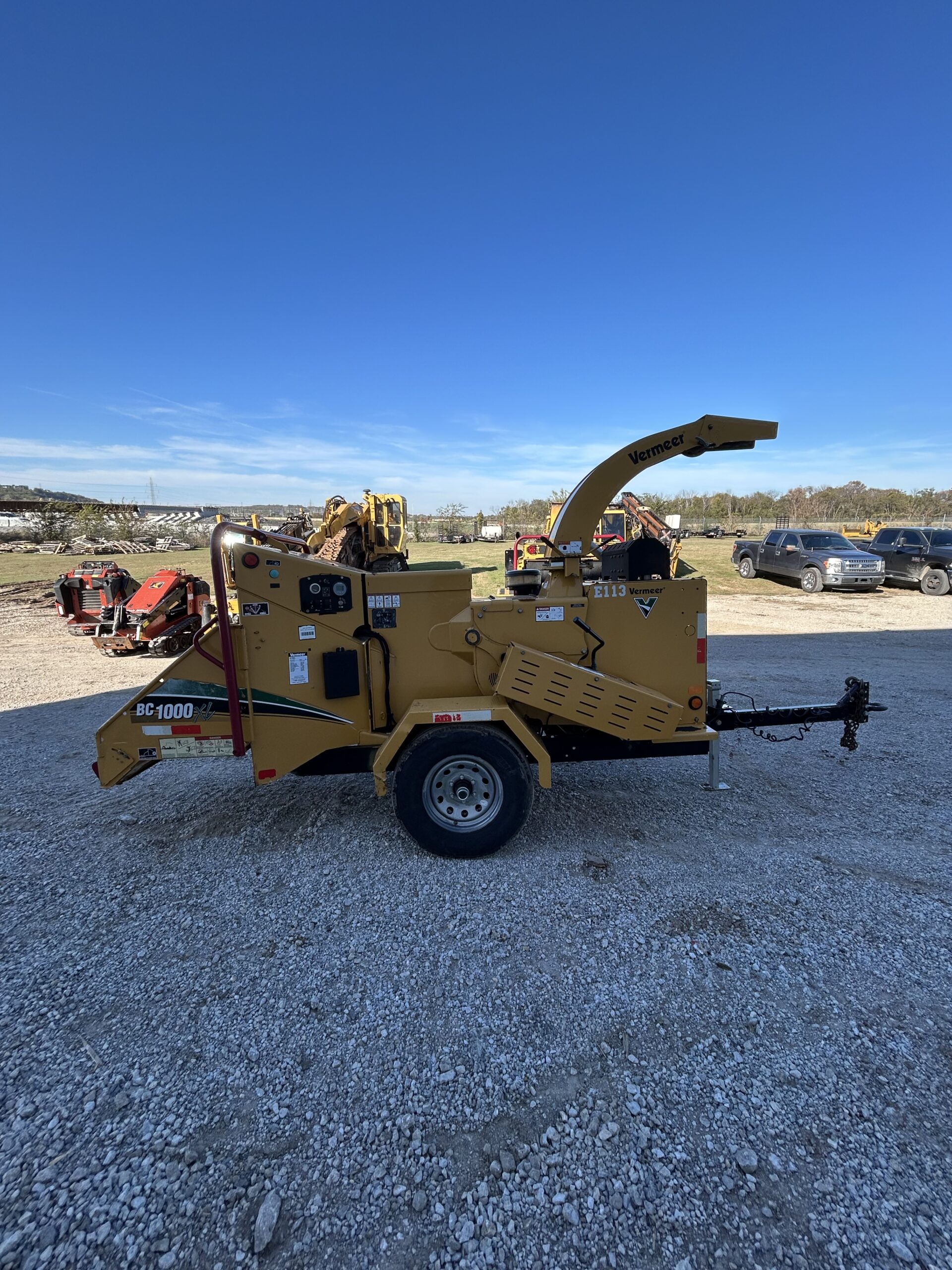 Looking for productivity and safety for your line-clearing and rental operations? The Vermeer BC1000XL provides the latest innovations, productivity, operator safety and power efficiency. Equipped with a 49-hp (36.4 kW) Deutz Tier 4 Final (Stage IV) diesel engine or a 74-hp (55.4 kW) Deutz Tier 4 Final (Stage IV), the BC1000XL delivers efficiency to chip through some of your toughest jobs, while the 25 gal (94.6 L) fuel tank cuts the time spent refueling and increases time spent on the jobsite. Patented SmartFeed control system monitors engine performance, and then stops the feed roller as needed. Optional sound abatement package adds an engine shield liner, triple-layer infeed curtain and a sound-reducing coating on the discharge chute.