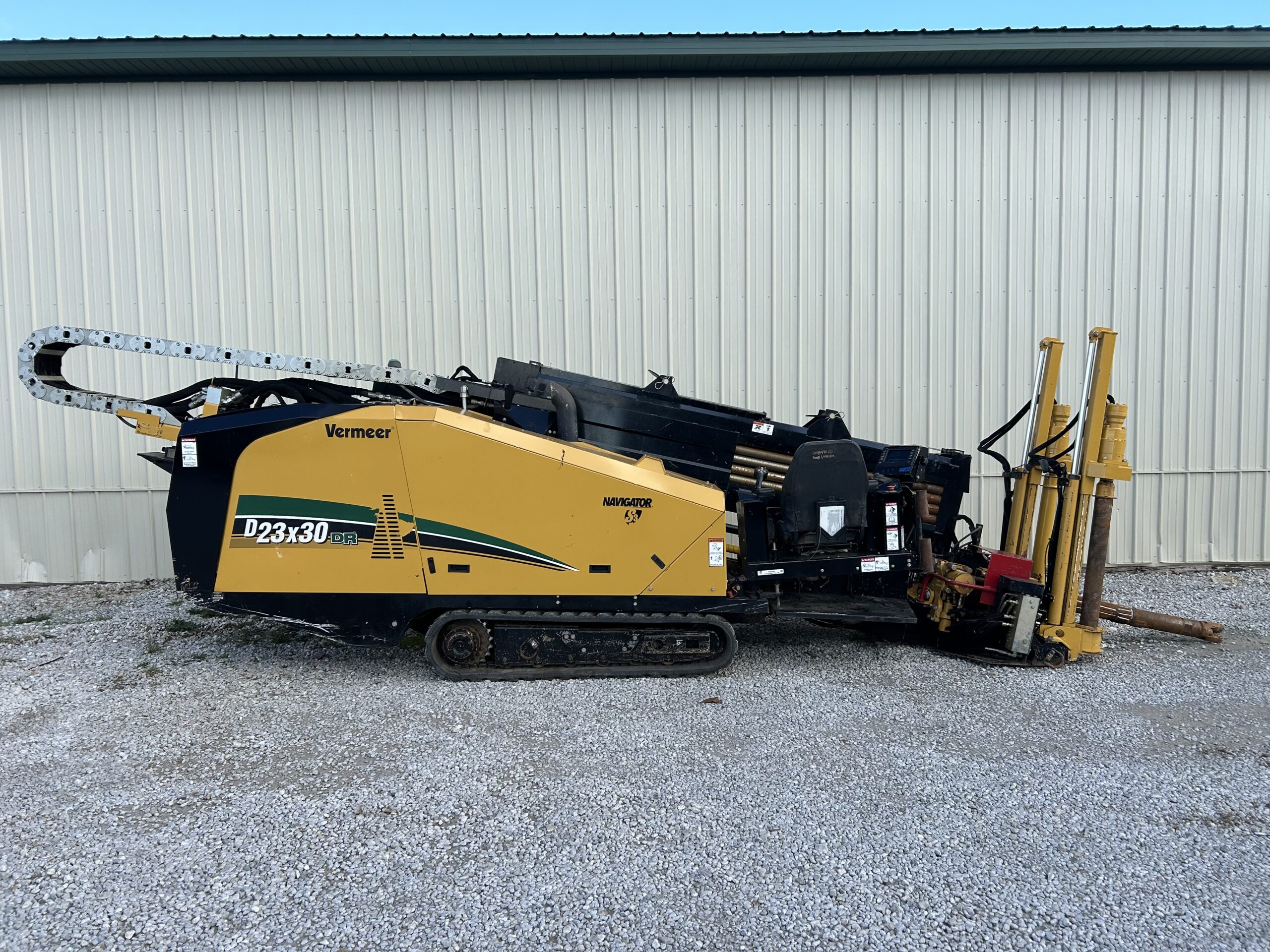 For drilling in rock, you need a machine that can take on the tough jobs in tough ground conditions. The new D23x30DR S3 Navigator® horizontal directional drill helps lead the way in rock drilling and continues the legacy of the S3 badge – speed, simplicity and sound. Adding to the Vermeer lineup of rock drills, the D23x30DR S3 offers dual rod technology in a compact yet powerful machine that enables operators to confidently and efficiently maneuver through rock in congested cities, busy neighborhoods or tight jobsites. Building on the dependability of the D23x30 S3, this rock drill offers a short and narrow footprint and quiet power for operator comfort while minimizing jobsite disturbance. Common controls can help operators transition smoothly into rock drilling from a single rod machine, while new tooling options can offer precise steering and maximized wear life to help provide optimized jobsite productivity. The D23x30DR S3 rock drill delivers impressive power that can help you bore through challenging ground conditions and keep you rocking on a demanding jobsite. Used drill housing and tri-cone bit included. Tracking remote included