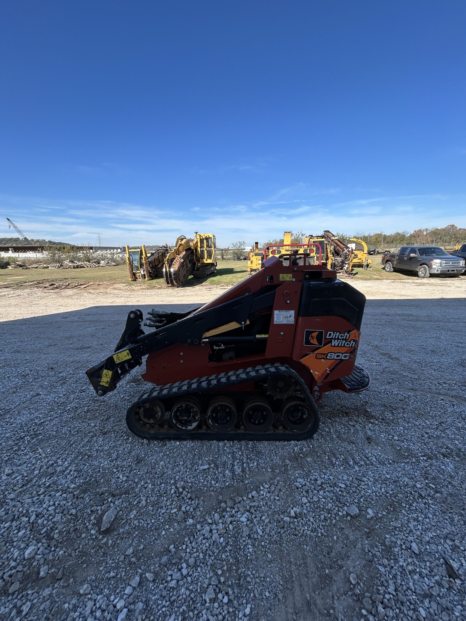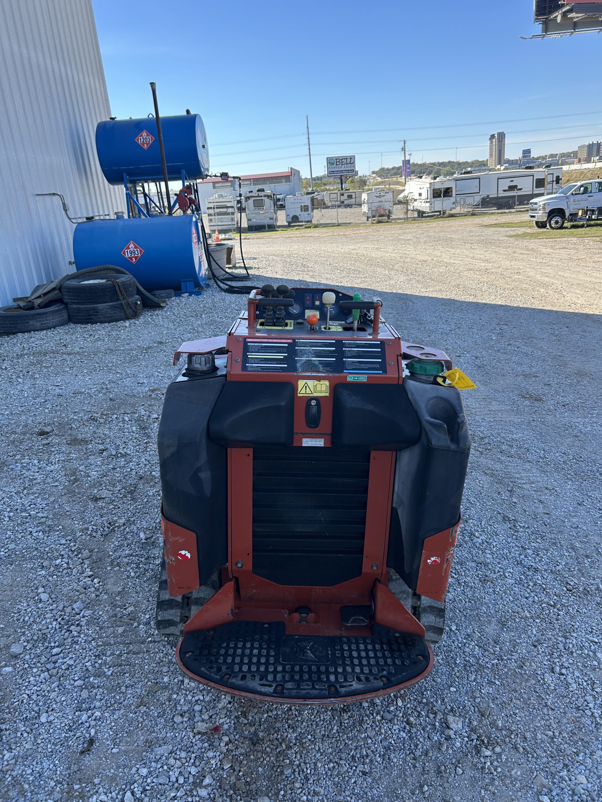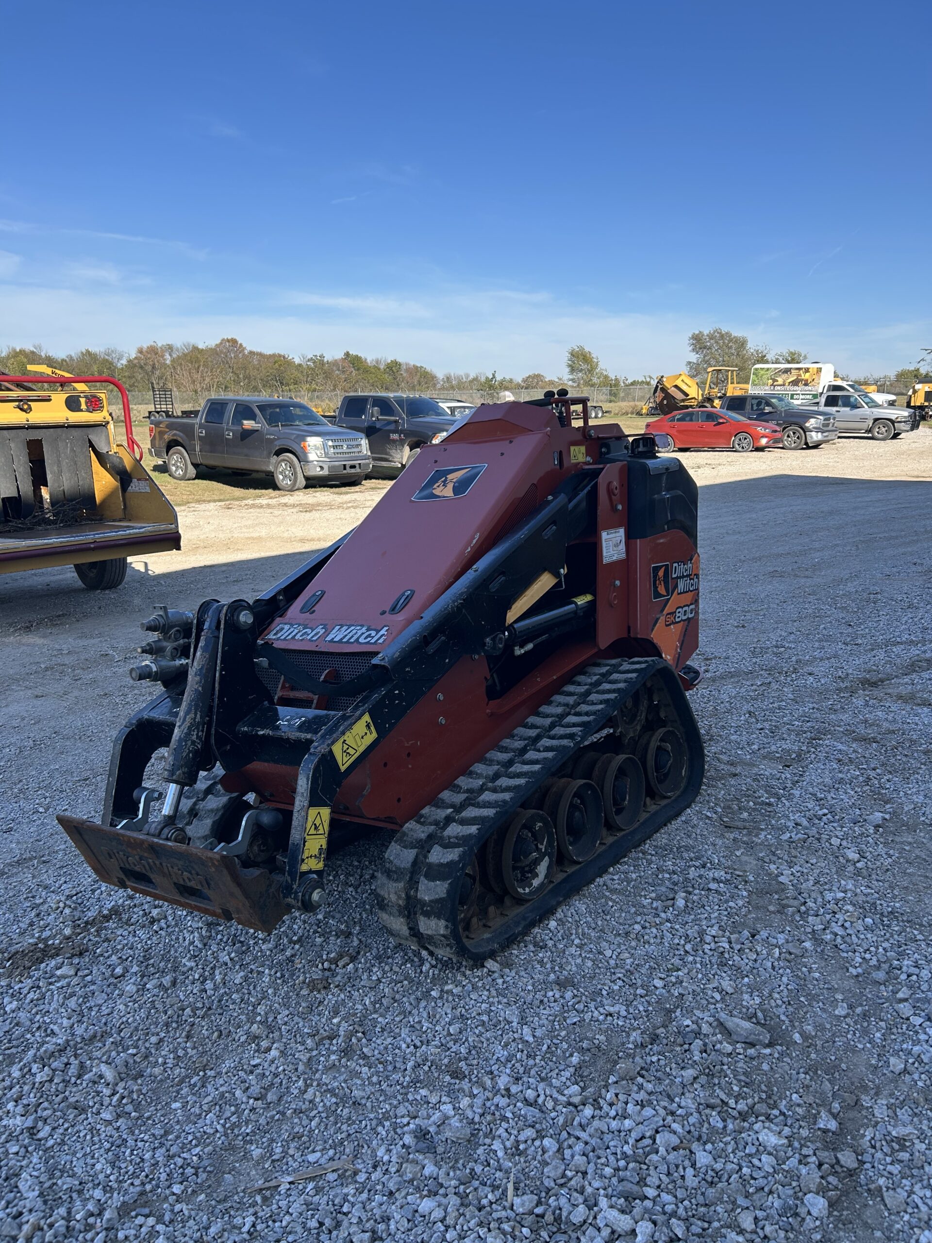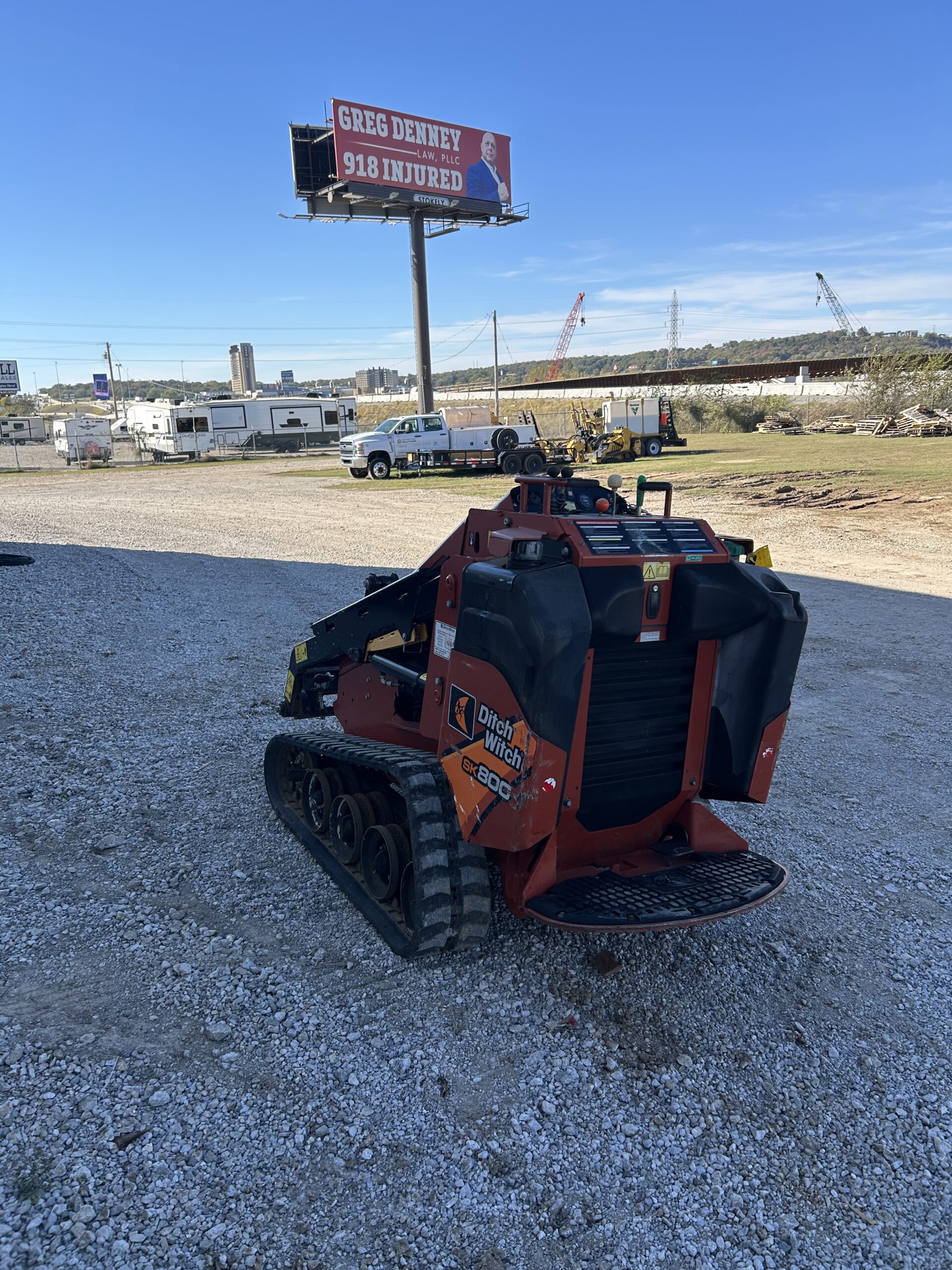 The Ditch Witch SK800 Mini Skid Steer features a 24.8-hp Kubota diesel engine, an operating capacity of 911 lbs, and a hinge-pin height of 83 inches. It has a ground drive speed of 4.8 mph in both forward and reverse, making it suitable for various heavy-duty tasks