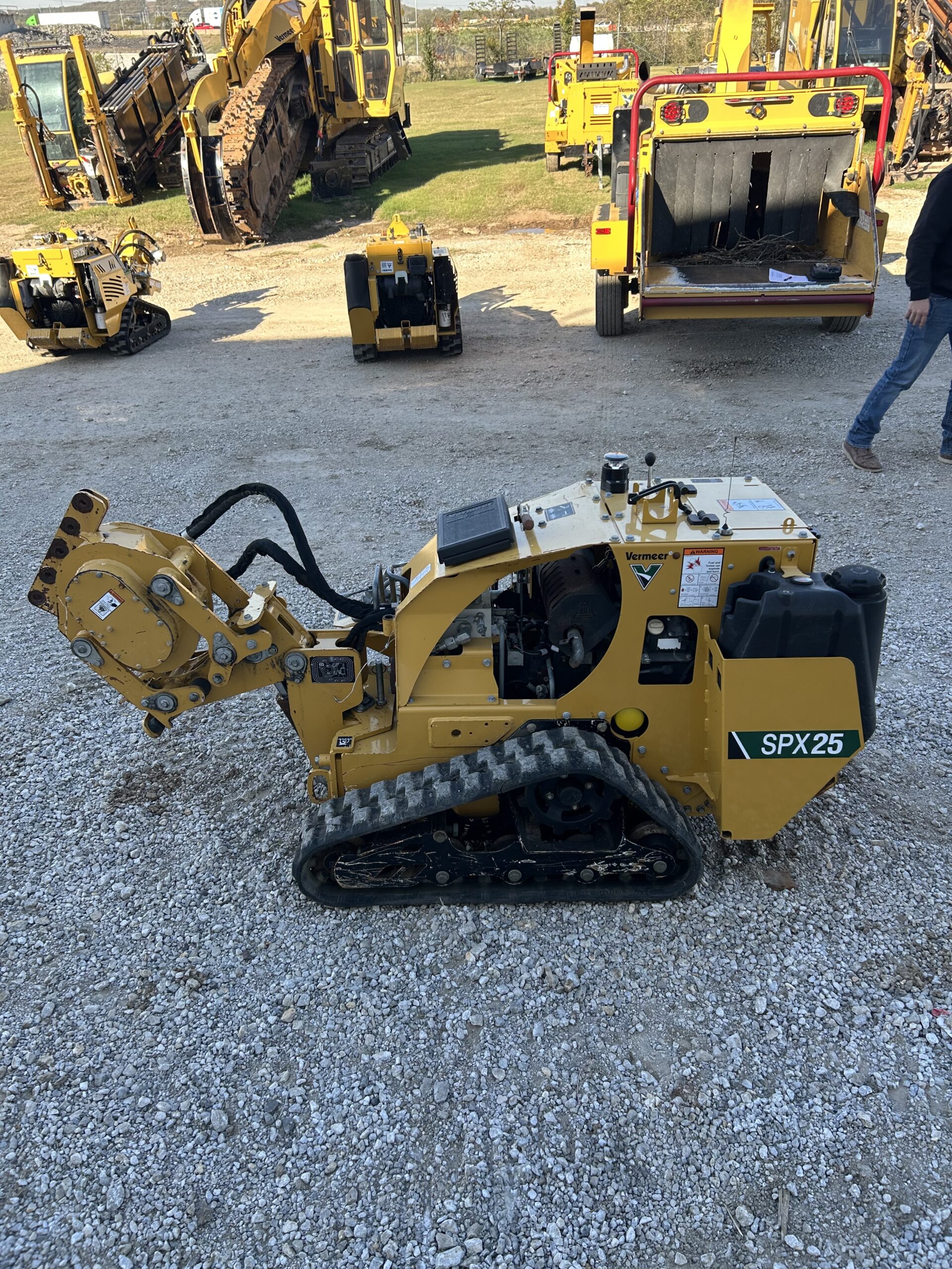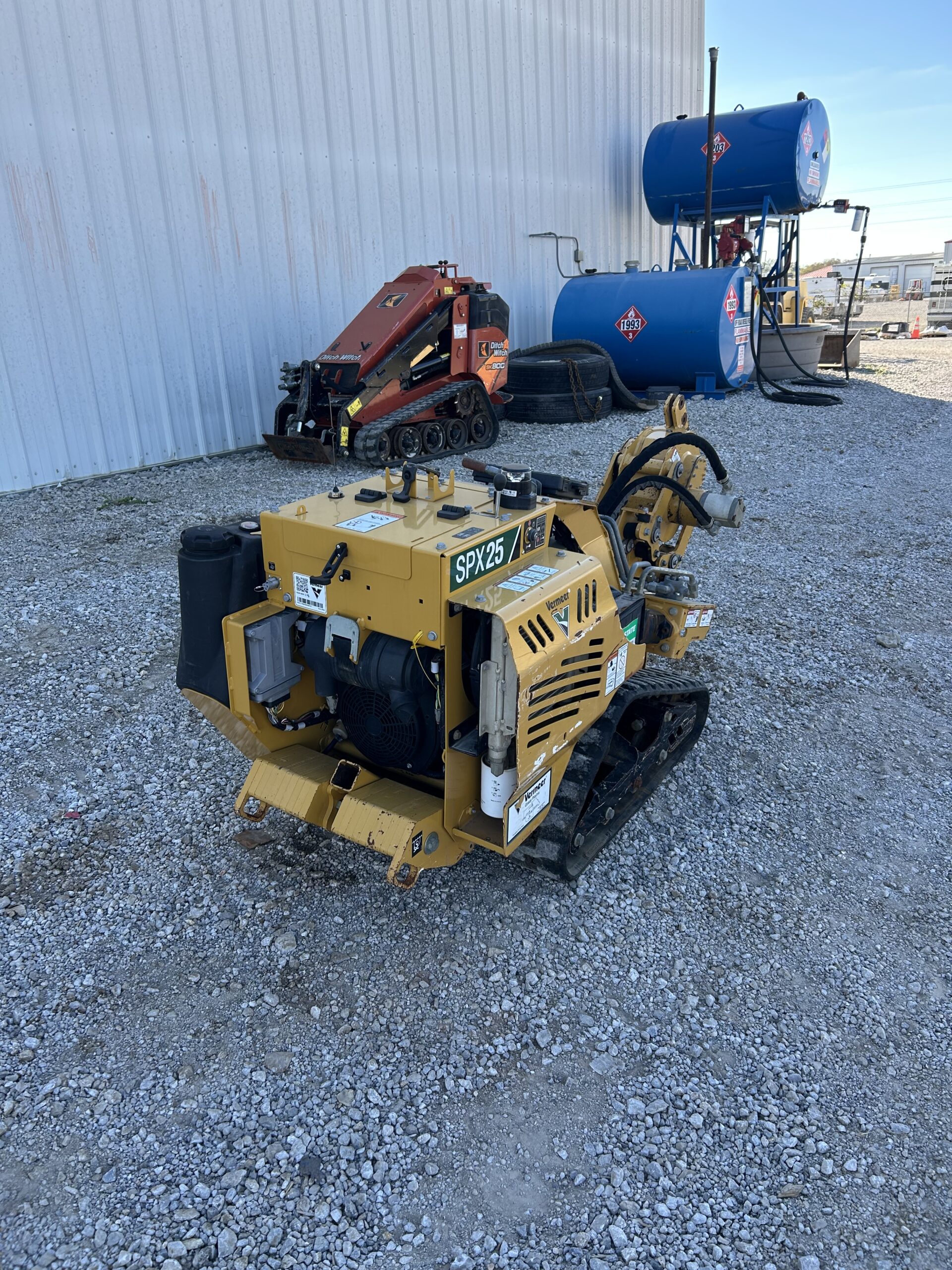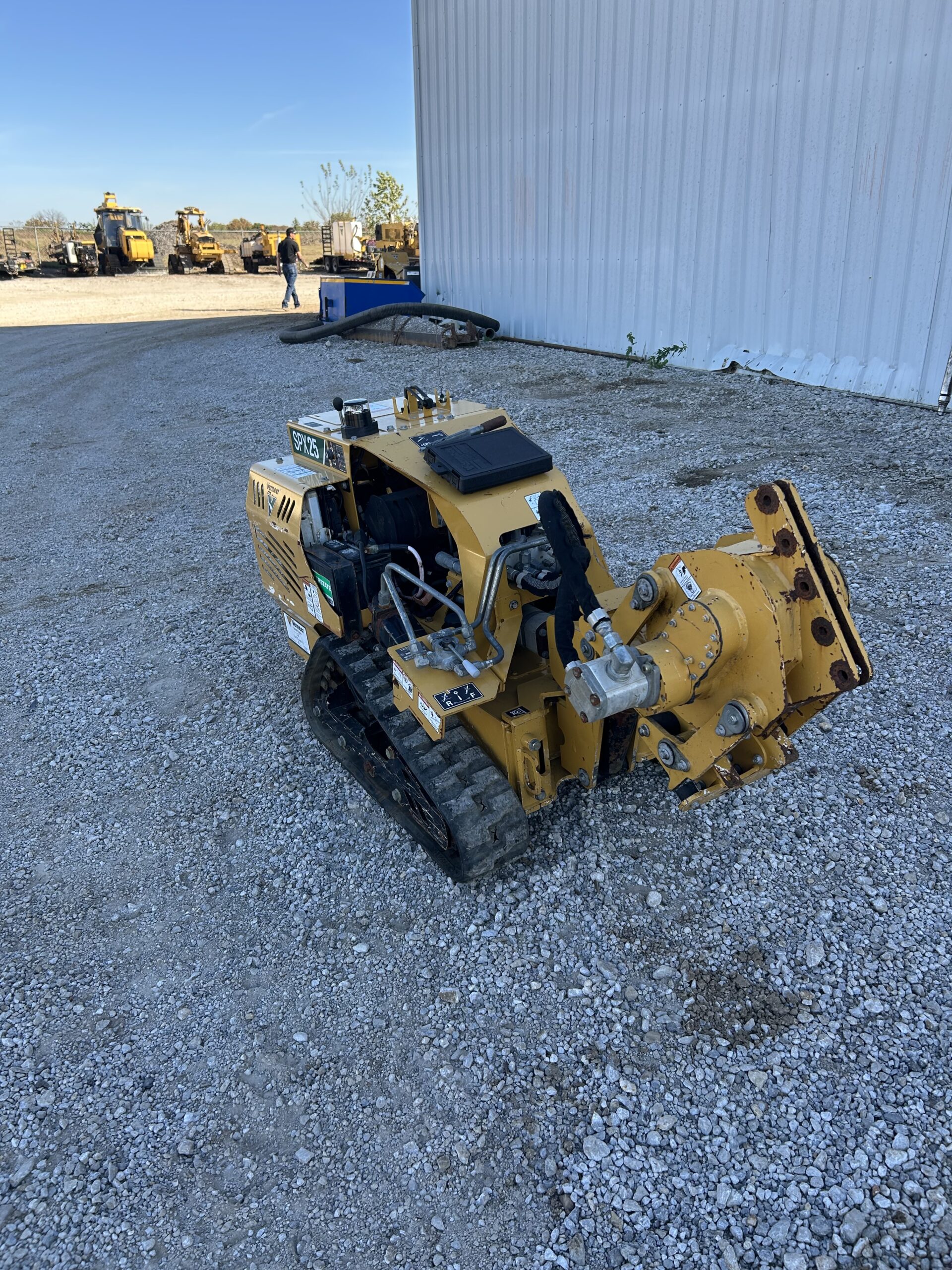 The SPX25 by Vermeer Corporation is an ideal machine for cable/fiber and irrigation contractors. The plow is operated with a full-function remote control that provides greater maneuverability in congested and tight jobsites. A 25 hp (18.6 kW) Kohler gas engine provides ample power for both plowing small pipes and cables at depths of 12” (30.5 cm) or less and boring underneath driveways and sidewalks.