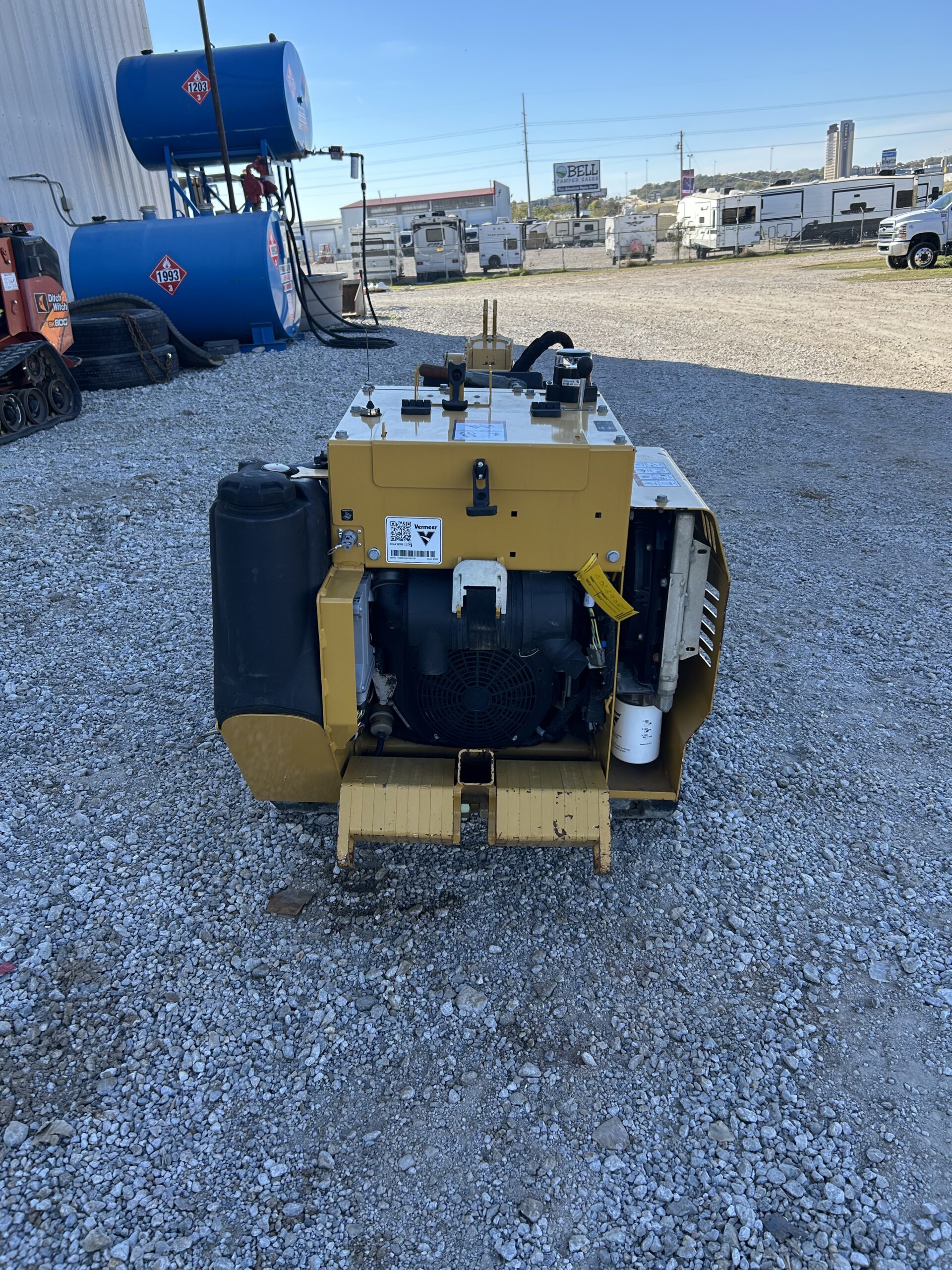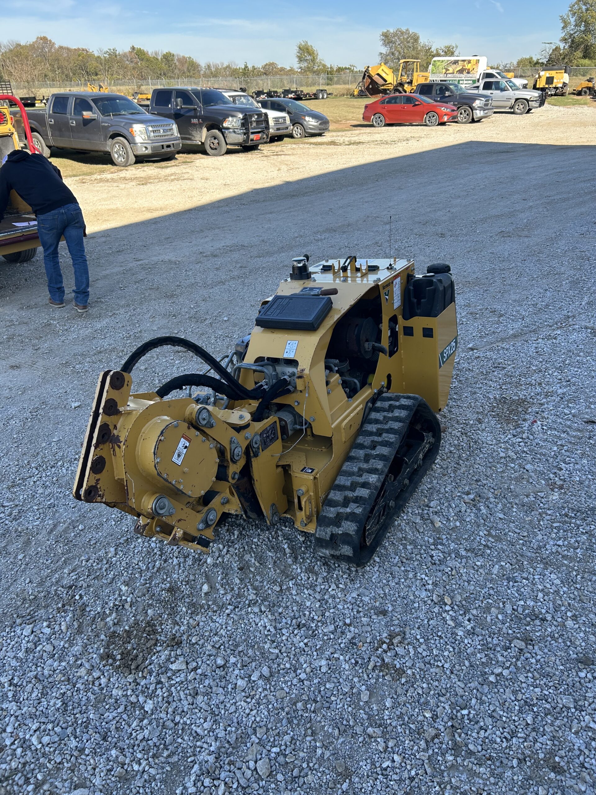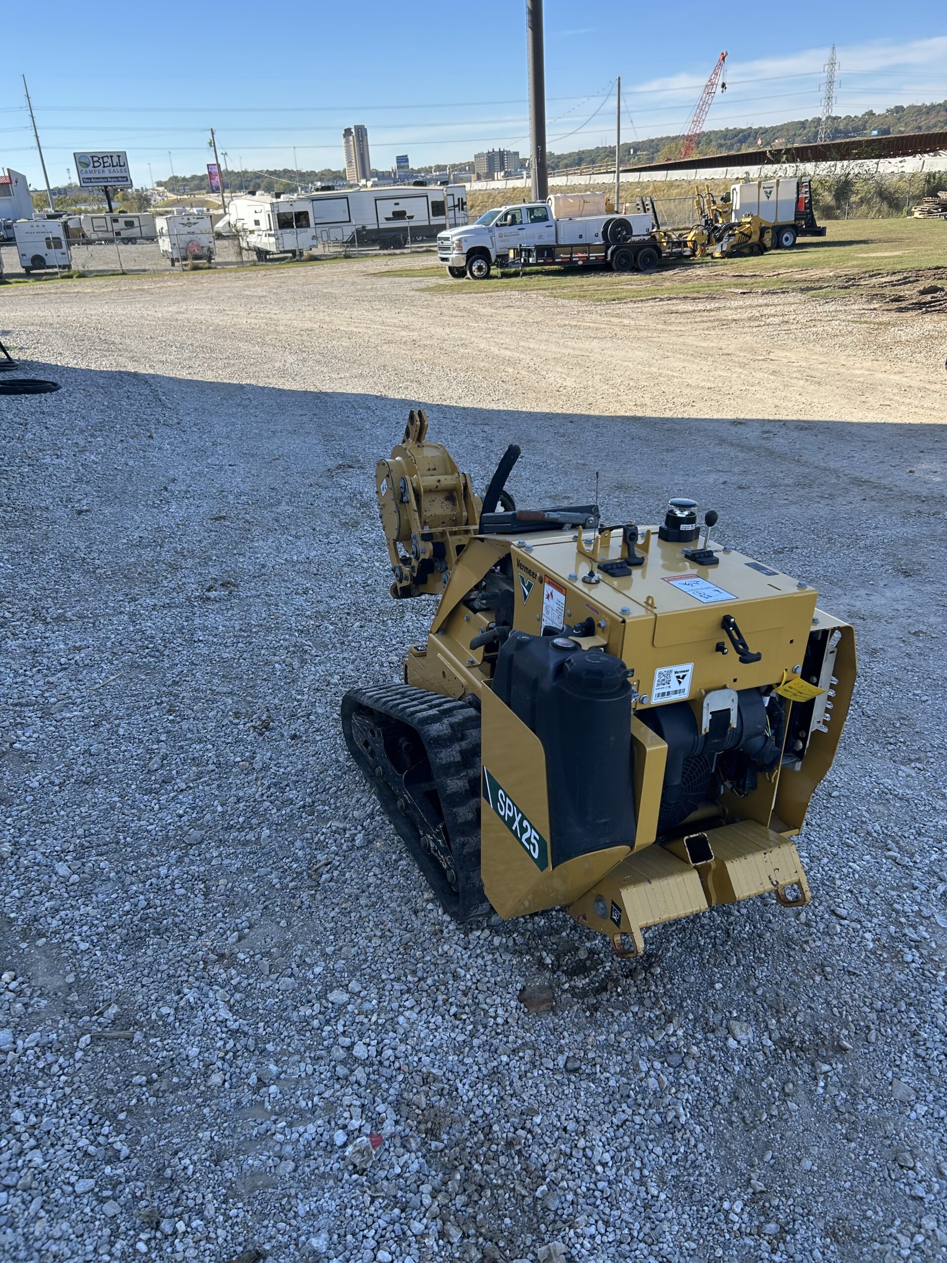 The SPX25 by Vermeer Corporation is an ideal machine for cable/fiber and irrigation contractors. The plow is operated with a full-function remote control that provides greater maneuverability in congested and tight jobsites. A 25 hp (18.6 kW) Kohler gas engine provides ample power for both plowing small pipes and cables at depths of 12” (30.5 cm) or less and boring underneath driveways and sidewalks.