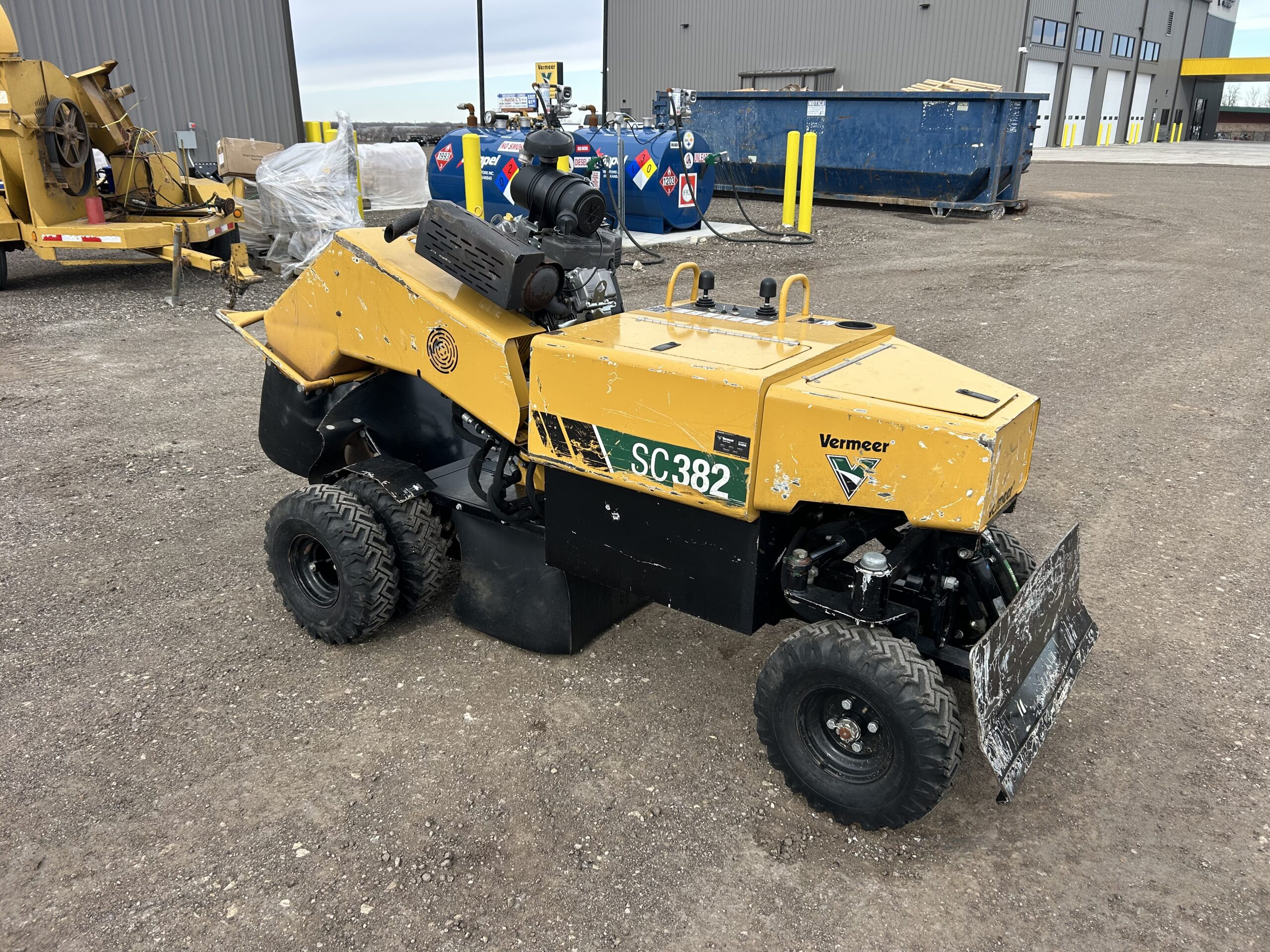 The SC382 was made for the tough stumps on your jobsite. This Vermeer stump cutter is equipped with a 37 hp (26.1 kW) EFI Briggs and Stratton Vanguard engine. The optimized cutting wheel on the SC382 gives this machine aggressive cutting capabilities. Along with standard four-wheel drive and the optional front blade, this model is the full package for stump cutting from start to finish.